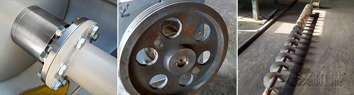 螺旋給料機是由驅動裝置、頭節、中間節、尾節、頭尾軸承、進出料裝置等幾部分組成。