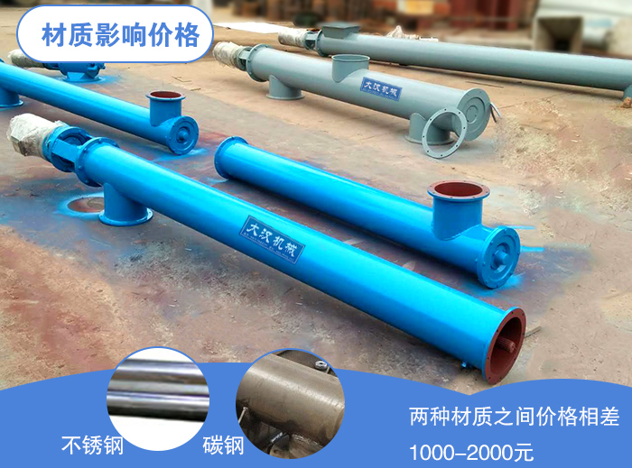 管式螺旋輸送機主要由碳鋼和不銹鋼兩種材質,選擇不同材質的設備,其價格肯定會有所不同,在型號等其他情況相同下,碳鋼材質的管式螺旋輸送機價格會比不銹鋼材質的便宜1000-2000元,但是其耐腐蝕性卻沒有不銹鋼材質的設備好,所以用戶在挑選材質時要結合輸送物料。