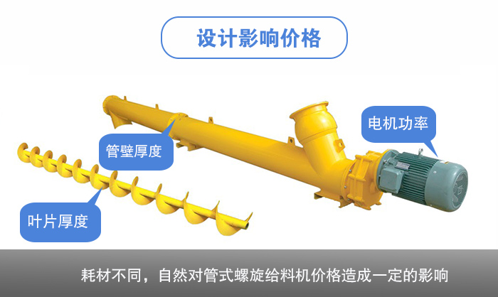 管式螺旋給料機可以按照用戶輸送物料及現場情況設計為水平式、垂直式及傾斜式,輸送角度越大,電機功率、管壁厚度還有葉片厚度就越大或越厚,這樣耗材不同,自然對管式螺旋給料機價格造成一定的影響,輸送角度越大,上述參數(電機功率、管壁厚度、葉片厚度)就越大,所以價格就會越貴。