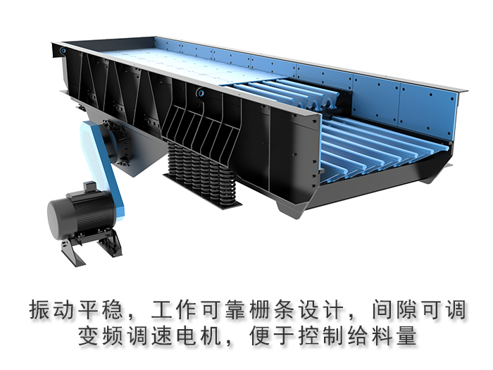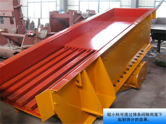 當(dāng)物料通過槽體上的篩條時(shí),較小料可透過篩條間隙而落下,不經(jīng)過下道的破碎工序,起到篩分的效果。