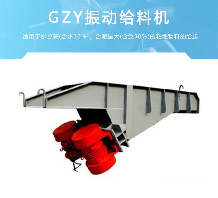 GZY振動給料機主要特點是采用不參振的普通電動機帶動偏心塊激振。與振動電機激振的振動給料機相比,具有能適應大給料量、工作可靠、使用壽命長、維修工作量小等優點。GZY振動給料機用來完成各種散粒物料的給料與配料,調節給料量非常方便。